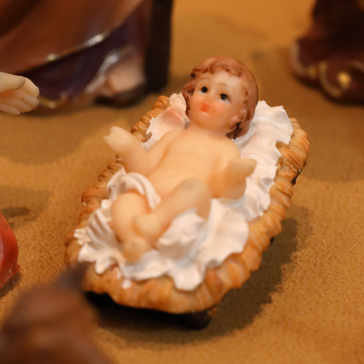 - Key Features: Depicts Mary and Joseph looking at baby Jesus with their great love.