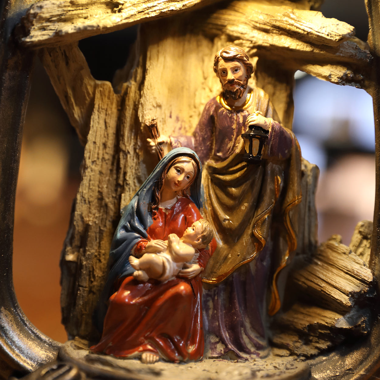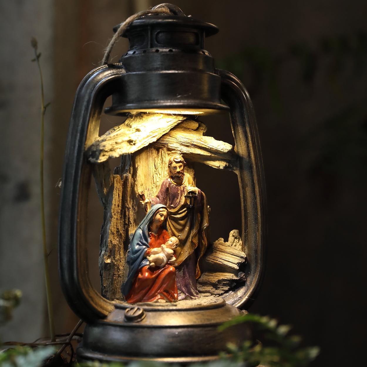 Home Decorations Nativity Set Jesus Figurine Christ Birth Scenes Holy Family Statue Christmas Tree Decor LED Catholic gift